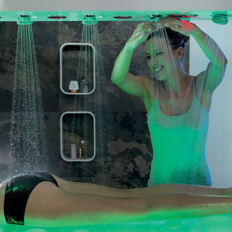 Модель представляет собой инновационный стол для проведения влажных SPA-процедур, оснащённый душем Виши с шестью форсунками. Такая система позволяет равномерно распределять поток воды по всему телу, усиливая расслабляющий и оздоровительный эффект процедур.