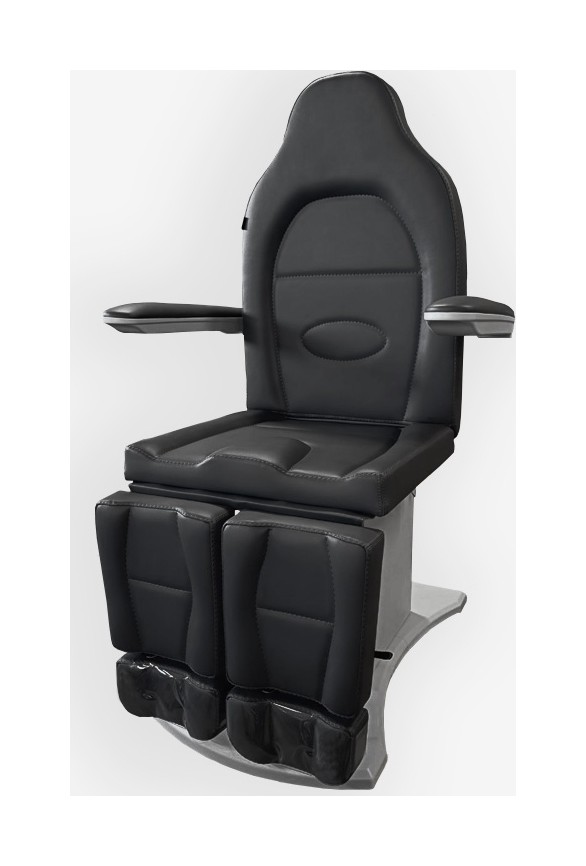 Педикюрное кресло оснащено двумя электромоторами, обеспечивающими регулировку высоты и угла наклона сиденья. Опоры для ног фиксируются при помощи газ-лифтов. Кресло легко раскладывается в горизонтальное положение, образуя ровную поверхность. Надежная конструкция системы подъема обеспечивает высокую устойчивость кресла даже при максимальной высоте. Управляется при помощи ручного проводного пульта. Дополнительно при производстве могут быть установлены различные опции.
